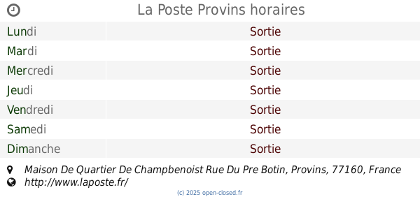 It is also possible to : Modifier ces HEURES D'OUVERTURE of Branche La Poste Dans Provins, Maison De Quartier De Champbenoist Rue Du Pre Botin,
